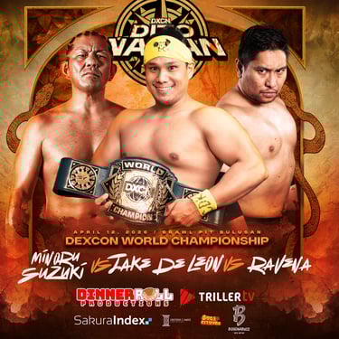 April 12 in the Philippines will see one of the region’s most stacked main events of the year as Jake De Leon defends the DXCN World Championship against Ravena and Minoru Suzuki in a triple threat match.