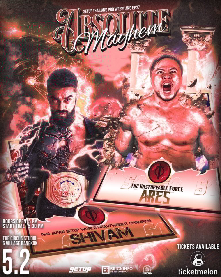 Ares faces Shivam at SETUP Absolute Mayhem in Bangkok as Southeast Asia wrestling heats up. Plus updates from VPW, SPW, FPW, TOP Dojo, and WUW Philippines.