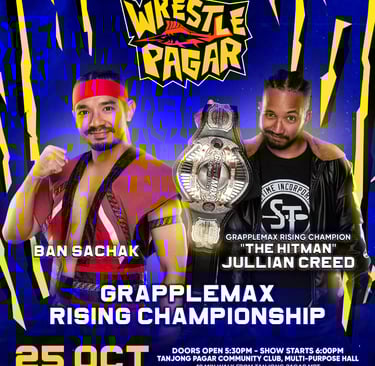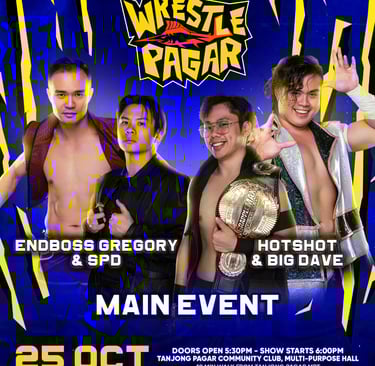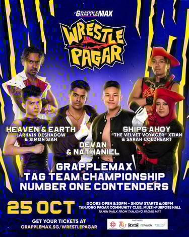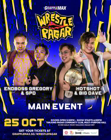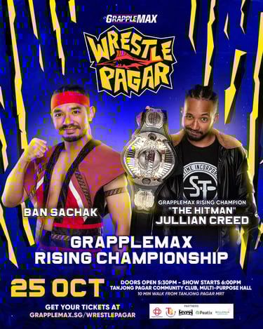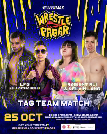 Grapplemax returns with Wrestle Pagar on Oct 25 at Tanjong Pagar CC — six matches, big rivalries, and MYPW stars back in Singapore for a massive showcase.