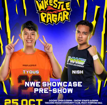 In the NWE Showcase, Tydus faces Nish in what looks to be far more than a trainee match. Nish has been all enthusiasm in his promos, excited for the chance to perform on a stage as significant as Wrestle Pagar. But underneath that energy sits a bit of a school rivalry — as both men attend the same school.