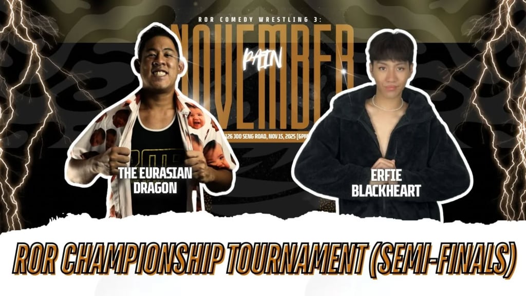 report from Ring of Rebirth’s Comedy Wrestling 3 in Singapore, featuring NYC vs Tok Bomoh Mekong, Raga Ngada vs Lightsinger Normand, and the chaotic Eurasian Dragon vs Erfie semi-final that sets up the ROR Title Tournament Final between NYC and Erfie this December.