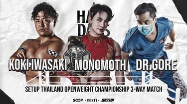 Koki Iwasaki — a powerhouse from Japan, former DDT 6-Man Tag Team Champion, and respected figure in the Japanese circuit. His match marks his Thai debut, where he aims to make an immediate impact by winning the title.