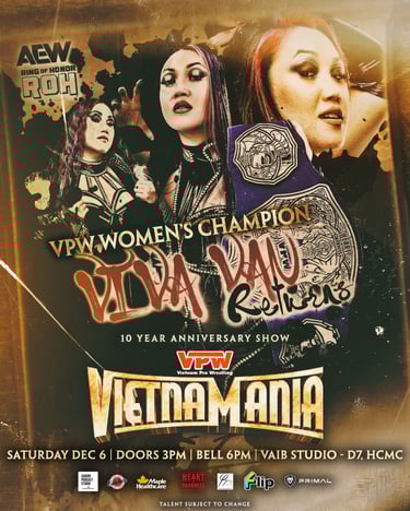 Vietnam Pro Wrestling will close out the year with its biggest show to date — Vietnamania, celebrating 10 years of VPW. The event will honor the founders, fans, staff, and everyone who has supported the promotion throughout its decade-long journey.