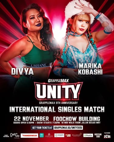 Celebrating her 10th anniversary in the ring, Marika Kobashi — one of Japan’s most exciting freelance wrestlers — brings her Asia Tour to Grapplemax UNITY, marking her Singapore debut.