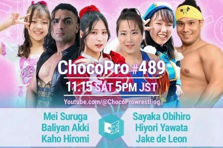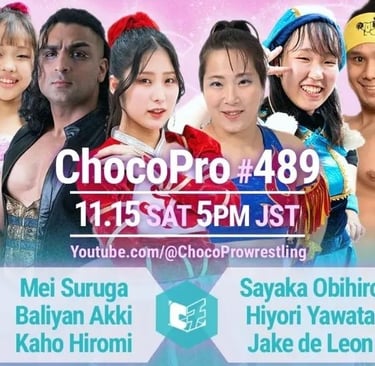 Following his appearance at SETUP Thailand: A New Dawn, Jake De Leon heads to Japan to team with Hiyori Yawate and Sayaka Obihiro against Best Bros and Kaho Hiromi at ChocoPro #489.