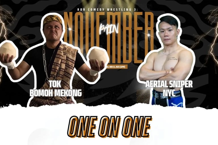 Ok Bomoh Mekong meets Aerial Sniper Nyc in a surreal clash of black magic and high-flying offense, while Erfie Blackheart takes on his former mentor The Eurasian Dragon in a match fueled by pride and betrayal, with a shot at the ROR Championship Finals on the line.