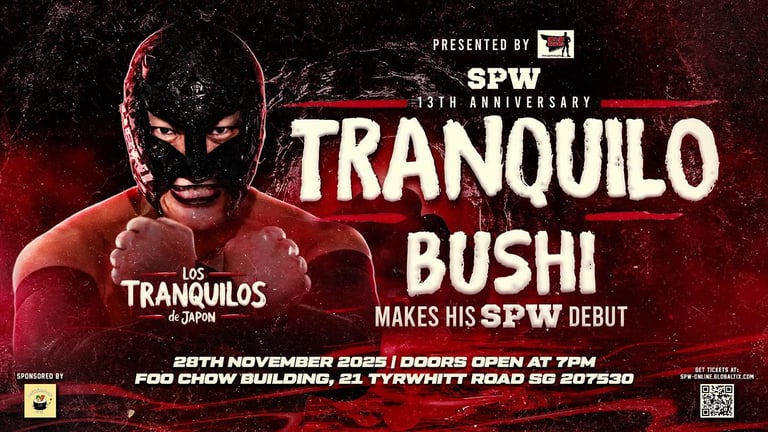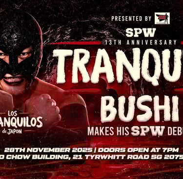 BUSHI of Los Tranquilos de Japon will make his SPW debut at the 13th Anniversary Show. This will be the former IWGP Junior Heavyweight Champion’s third trip to Singapore, and his first time stepping into a Singapore Pro Wrestling setting. His opponent has yet to be confirmed.