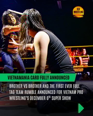 All signs point to Vietnamania being a full collaboration between Singapore Pro Wrestling (SPW) and VPW. With SPW recently hosting Viva Van, this reciprocal partnership brings several SPW names onto VPW’s biggest stage—an exchange that only benefits Southeast Asian wrestling by increasing visibility across borders.