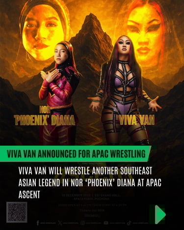Fresh off her U.S. return and high-profile defence against Mercedes Moné, Malaysia’s Phoenix faces global standout Viva Van, known for her work in AEW, NJPW, ROH, and numerous international promotions.