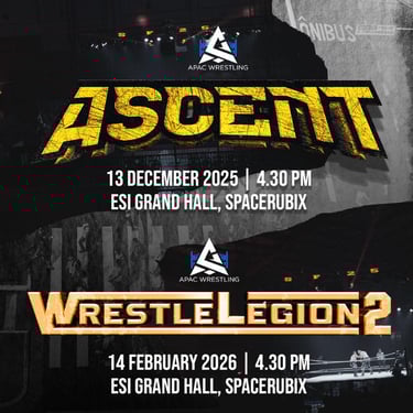 APAC Wrestling has confirmed its next events, beginning with Ascent on 13 December at ESI Hall, Spacerubix. The promotion will return to the same venue on 14 February 2026 for Wrestlelegion II, one of its flagship shows.