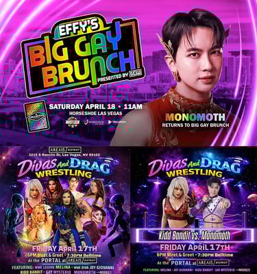Monomoth has confirmed multiple appearances during WrestleMania week in Las Vegas. He is scheduled to compete at Divas & Drag Wrestling against Kid Bandit, and will also appear at Effy’s Big Gay Brunch on April 18th. The bookings place him within a series of high-visibility independent events during one of wrestling’s busiest weeks.