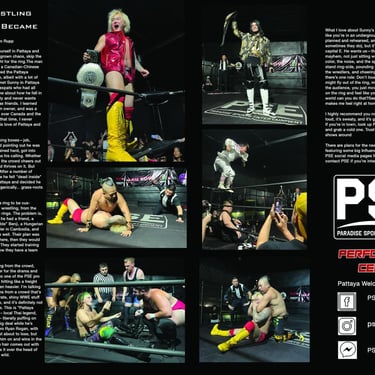 The two-page article examines the rise of the company within Pattaya’s entertainment scene and includes comments from Sunny Z and Benji regarding the development of the promotion and its role in expanding professional wrestling in the area.