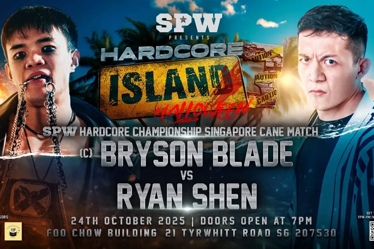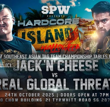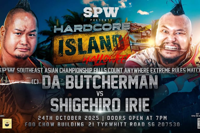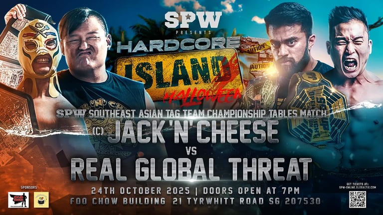 SPW returns with Hardcore Island 3 in Singapore, featuring table matches, extreme rules bouts, and the Halloween Battle Royal. Full match card and preview inside.
