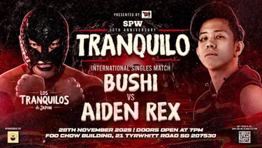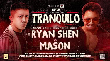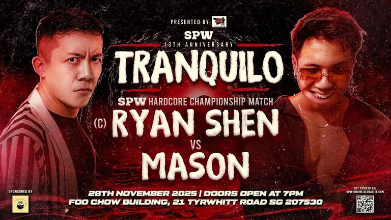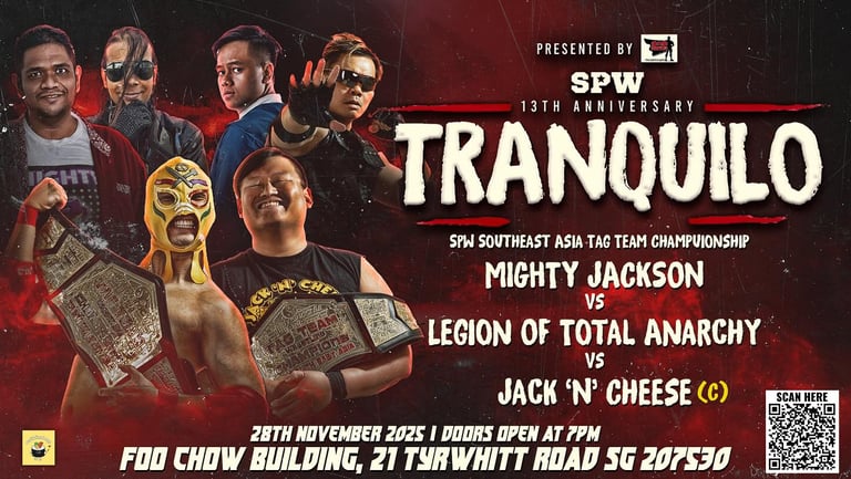 Tranquilo isn’t just SPW’s final major show of the year — it’s the culmination of 13 years of Singapore wrestling, featuring one of the deepest cards SPW has ever assembled. Championships are on the line, rivalries hit breaking point, and international talent arrives to test SPW’s very best. Whether you’re here for the chaos, the athleticism, or the stories finally coming to a head, this show promises to be the perfect end-of-year celebration for Southeast Asian wrestling fans.