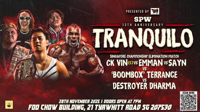 We reach the end of the Singapore Pro Wrestling public calendar for 2025 this coming Friday, with only a few closed-door shows left outside of the year-ender, Tranquilo. Celebrating 13 years of professional wrestling in Singapore, SPW is closing the year with one of its most stacked cards yet, capped off by a main event that feels genuinely unpredictable.