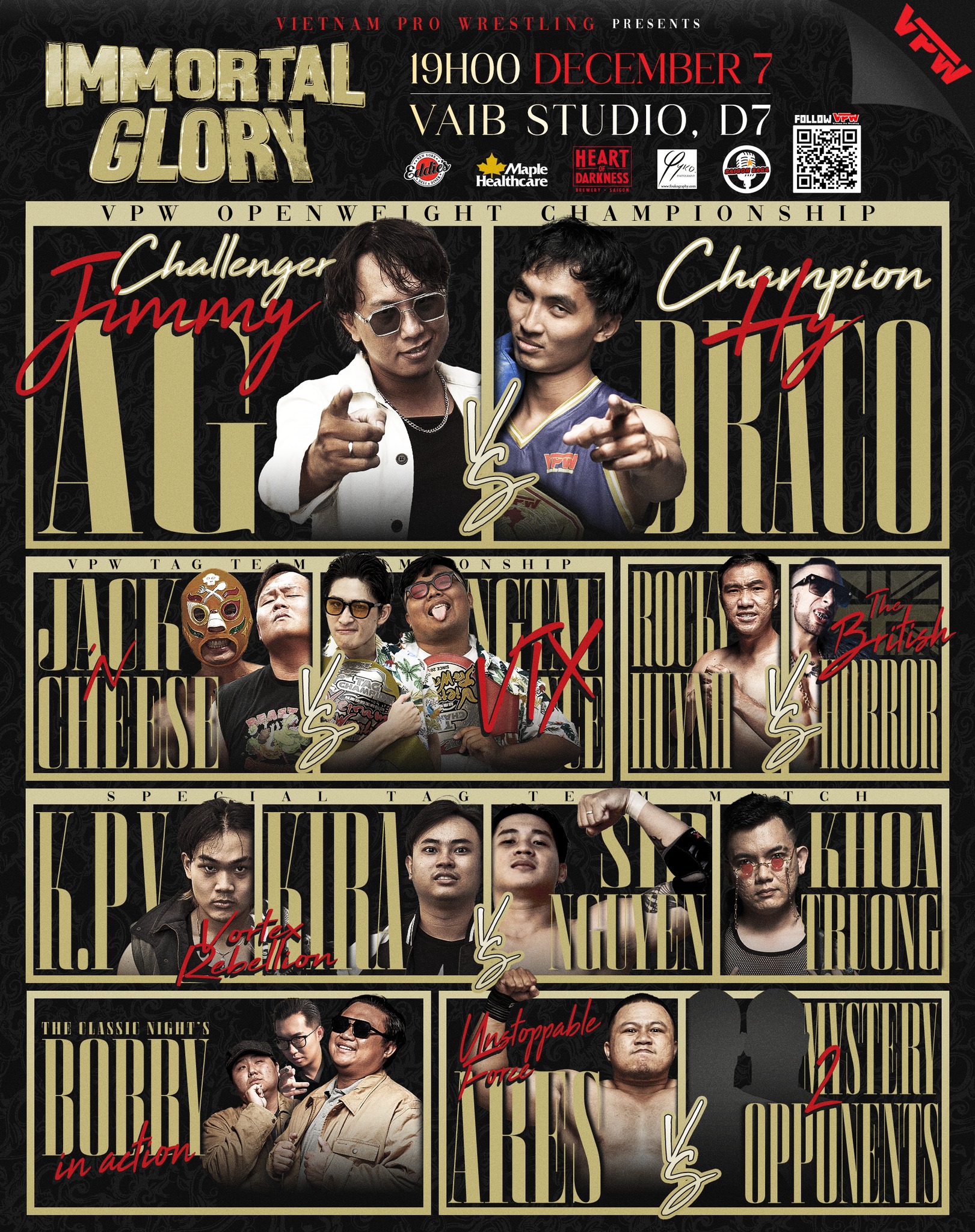 Vietnam Pro Wrestling finished up its calendar of events for the year with Immortal Glory. Once again, the event came from their home at VAIB Studios in District 7, Ho Chi Minh City. As always, attendance was strong with over 250 fans in attendance, and the in-ring entertainment was supported by food from Eddie’s Diner and craft beer from Heart of Darkness.