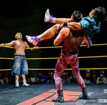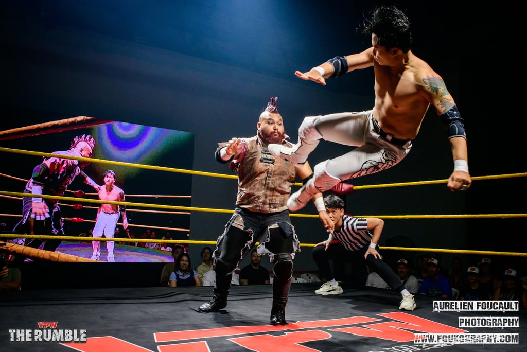 From there, the foreign invasion began. Miles Karu entered to a mixed reaction but started hot. Then Da Butcherman hit, and the atmosphere shifted as they eliminated Venom Shank. When Jake De Leon joined them, the three SEA outsiders united, stomping the VPW logo into the mat to a deafening chorus of boos. The heat was unreal.