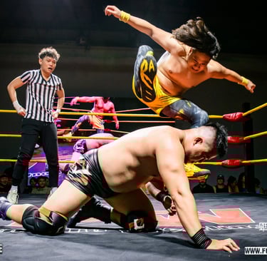 The relief came in the form of Fugo Fugo Yumeji. The returning Sensei — a cornerstone of VPW’s early days — which brought the house down. Fans exploded for his surprise entrance, singing along as Fugo and WUW Tag Championship partner Sansyu held up their banners. He lit up De Leon and Karu with stiff shots and even nailed a crawling headbutt before the heel trio regrouped and, after a spirited flurry, dumped him out. It was short, but it reminded everyone why Fugo is still so beloved.